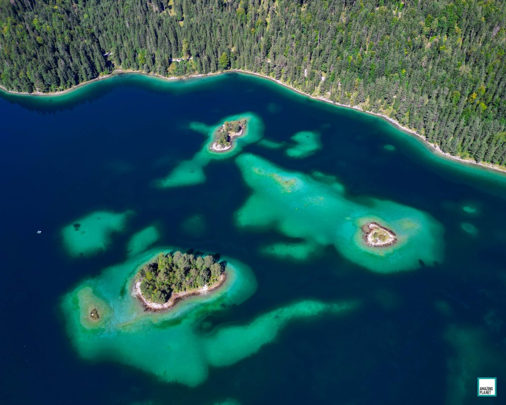 The Eibsee was formed almost 4,000 years ago due to the retreat of a nearby glacier and got its final shape by one of the largest landslides in the Alpine region. Eight small islands embedded in crystal clear emerald-green shimmering mountain water define its uniqueness and natural beauty. That’s why lake Eibsee was often compared to a German version of the Caribbean.