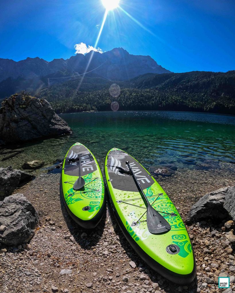 Due to the close proximity of the Zugspitze cable car, parking space can be quite limited especially during the warmer summer days. Therefore, it is highly recommended to be there already early in the morning. If you are taking public transportation, head to Garmisch-Partenkirchen station and take the bus from there. Most tourists in the area take the cable car to Zugspitze or walk the round course. Kayaks, SUPs or small pedal boats can be also rented near the hotel. During summer times, there is also a restaurant with a nice lake-view terrace offering food and drinks to the daytime visitors. Lake Eibsee can be perfectly combined on a multiple-day trip with hikes in the Zugspitze region, a visit of the Höllentalklamm gorge or Neuschwanstein castle. And the best part at last: there is no entrance fee 😉