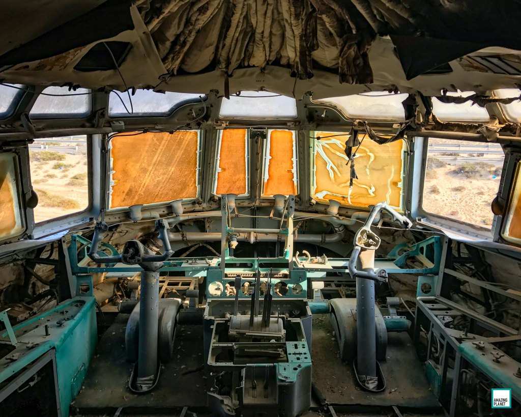Just behind the hangars of the old airport, an old Antonow AN-2 was resting in the sand. The AN-2 is the largest single engine double decker and first built in 1947 in former Soviet Union. Whereas there can be found a lot of information about the old IL-76, there is almost nothing known about the old Antonov. It was most probably registered as EX-70306 and served as carrier aircraft for local skydive activties, before the airfield was closed down in the mid 2000s. Since then, the 13 m long double decker was grounded and decaying under the heat of the Middle East.